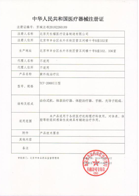 TCF-2000III醫療器械注冊證